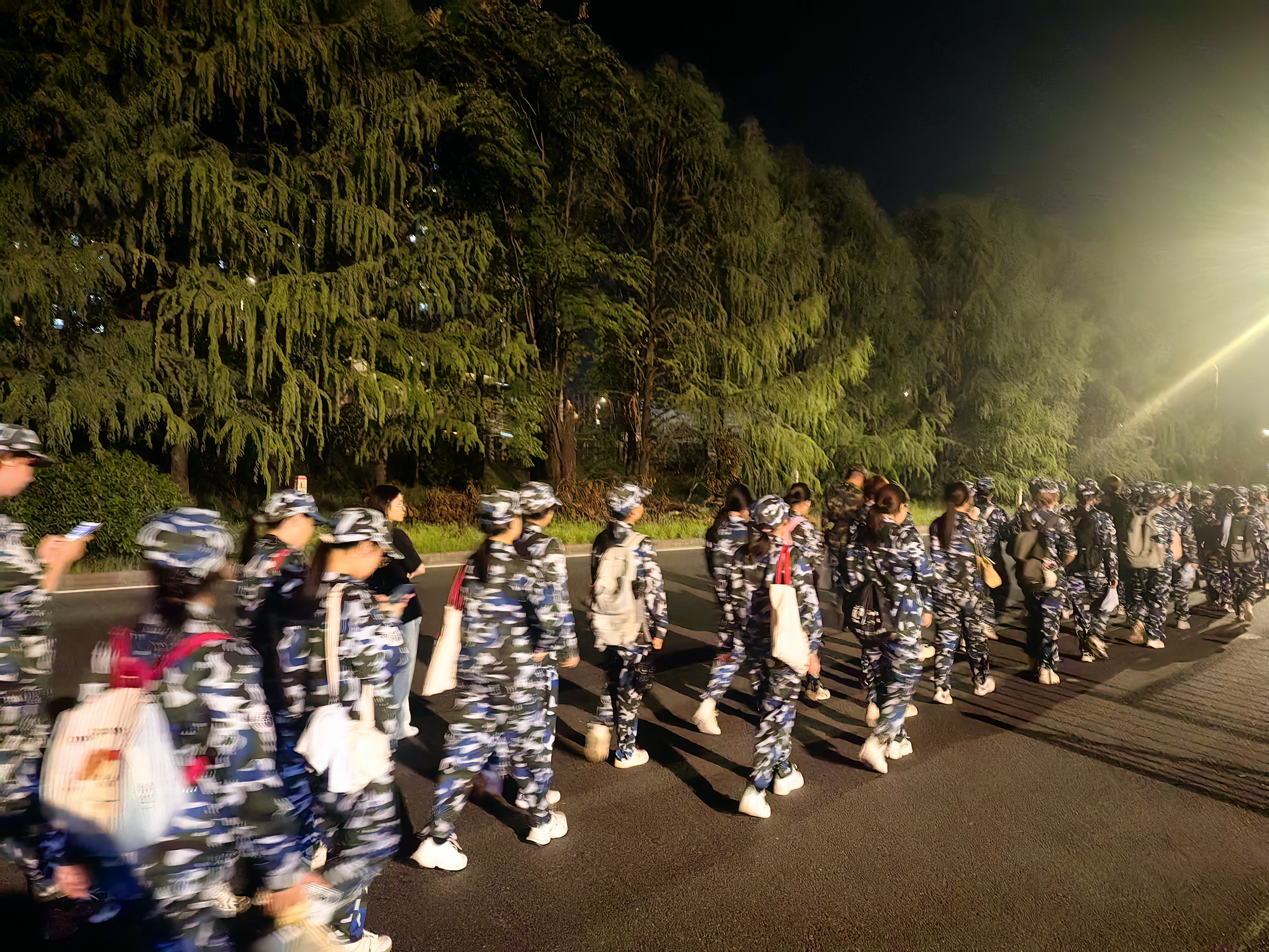 9月22日晚,学校军训师组织10公里夜间拉练。51白菜网全体学员斗志昂扬,整队出发。夜色中,拉练队伍沿钱塘江畔行进。面对体力极限与困意挑战,同学们相互扶持,展现出顽强的拼搏精神。教官与学院老师、班导全程护航,加油鼓劲。次日凌晨1点50分,队伍全员顺利返回。这场拉练不仅强健了体魄,更磨砺了不畏艰难、坚持到底的钢铁意志,成为军训时光中难忘的一页。